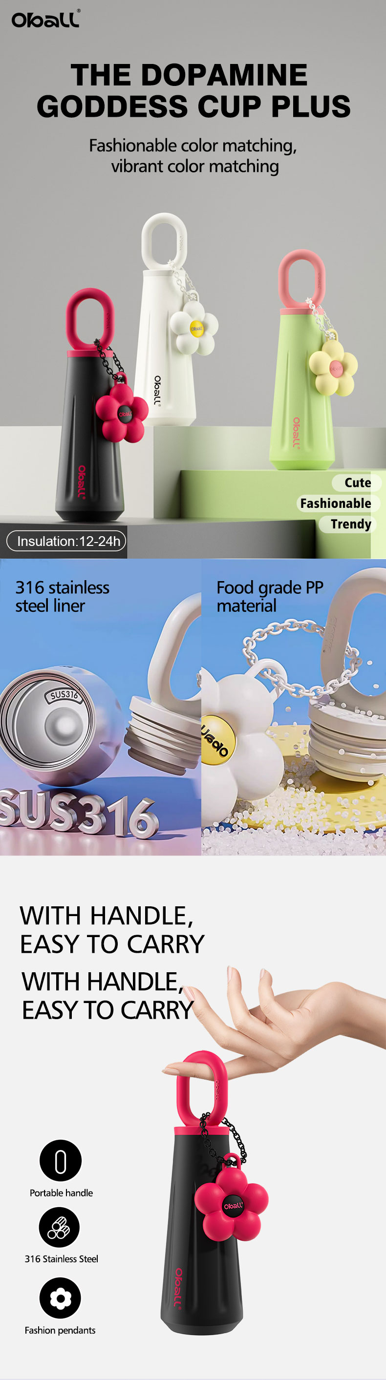 316 stainless steel liner/heat and cold insulation/two drinks in one cup/portable